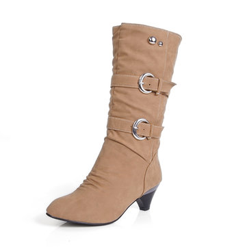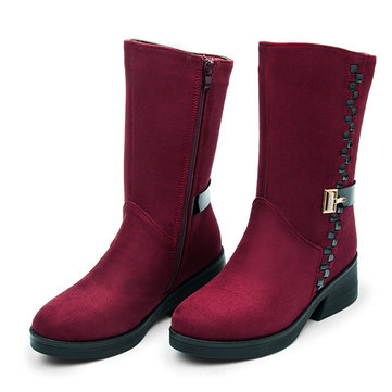 US Taille 5-11 Femmes Slip On Casual Suede Mid-Calfboots