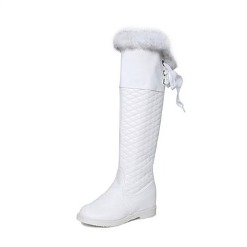 Artificiel fourrure chaud genou haute neige bottes strass chaussures pour femmes