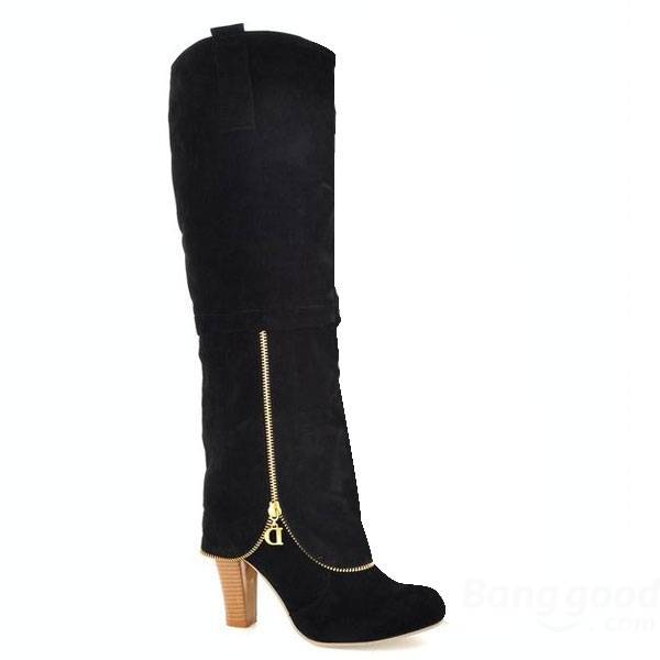 Femmes de plus de genou en daim extensibles chaussures à talons hauts bottes de loisirs