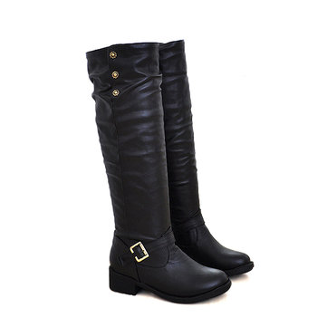 Femmes sexy boucle en cuir synthétique sur le genou bottes plates élevés