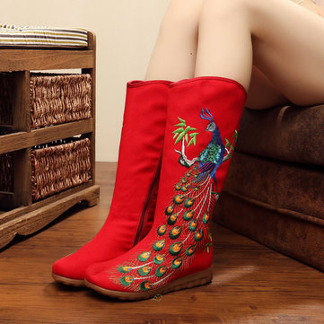 Tissu de paon cheville fermeture éclair brodé bottes courtes