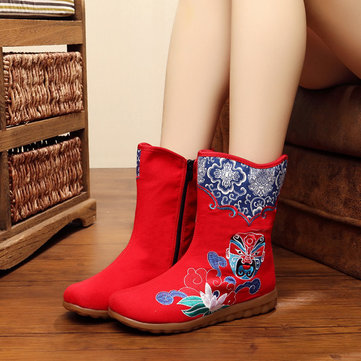 Taille nous 5-10 femmes bottes de plein air occasionnels broderie vent national bottes courtes plates florales