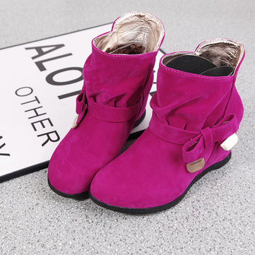 Couleur pure bowknot slip sur l'augmentation des talons chaussures bottes courtes