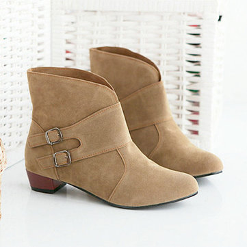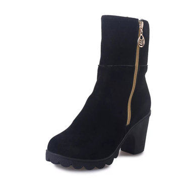 Bottes courtes casual gros talon coté fermeture éclair mi-mollet en métal