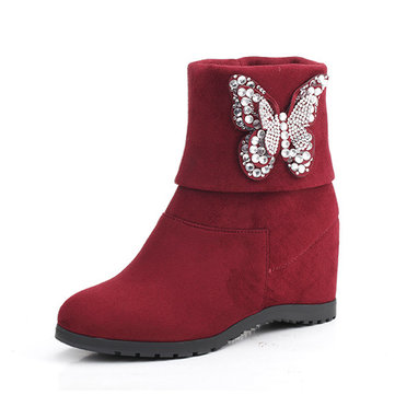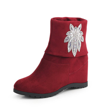 Court bottes hiver femmes suède casual décontracté en cristal chaussures à talons hauts