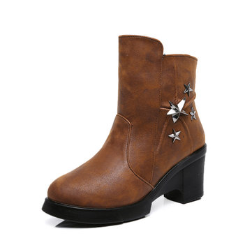 Bottes courtes glissière latérale décoration étoile coton doux unique doublure de la cheville pour les femmes
