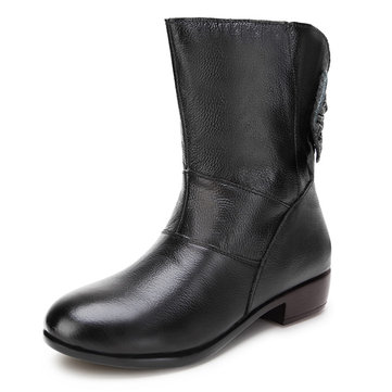 Semelle souple doublure en laine coté fermeture à glissière bout rond bottes courtes cheville