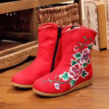 Filles fleur broderie respirante fermeture à glissière bout rond cheville court bottes