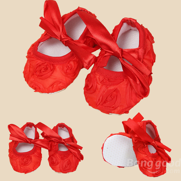 Prewalker seul bébé bébé arc rouge souliers de satin doux