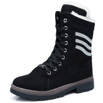 Femmes bottes d'hiver de neige top coton peluche chaussures de sport mi-mollet bottes hautes à lacets