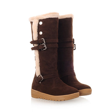 Hiver femmes mi-mollet bottes de neige de fourrure de mode de doublure coton suède bas talon chaussures