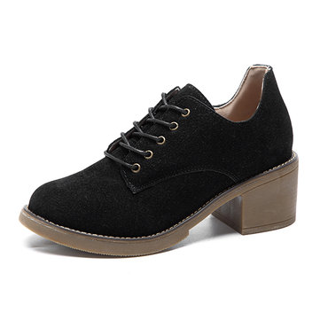 Femmes& épais,& talon,& daim,& lacet,& décontracté, confortable, pompes