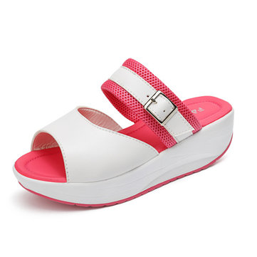 Les femmes été chic et sandales compensées crochet match de la couleur de la boucle de maille respirante sandales