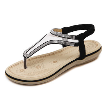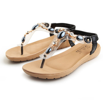 Perlage?Bohémien?élastique?Slip?On?Sandales Plage Plates