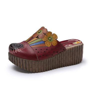 Socofy Original Handmade Flower Slip On Retro Sandals