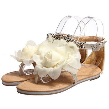 Fleur de tissu en mousseline de soie flats t sangles sandales chaussures de plage