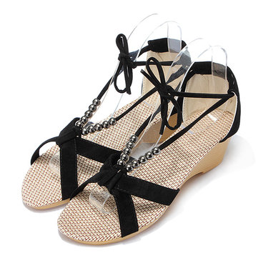 Talon plat perles occasionnel lacage gladiateur petites chaussures de coins