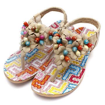 Les femmes été nouveau flip perles bohême pantoufle flops sandales plates plage string chaussures
