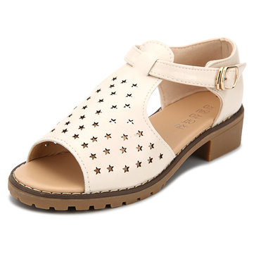 Femmes été sangle peep toe sandales de plage étoiles évider sandales plates