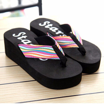 Les femmes roma plate-forme de coins hauts talons tongs pantoufles sandales chaussures de plage