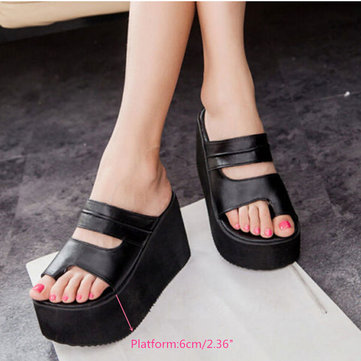 Les femmes casual slip à l'aise sur la plate-forme orteil anneau bascule sandales plage pantoufle chaussures