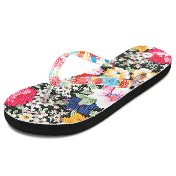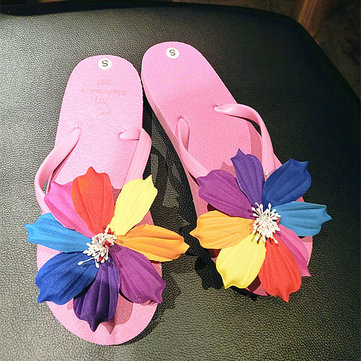 Plage femmes d'été pantoufles de fleurs chaussures femmes plat sandales occasionnels tongs chaussures&