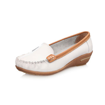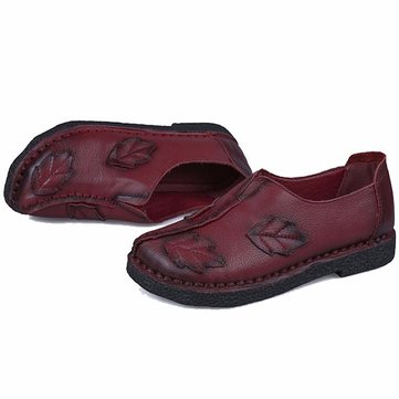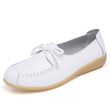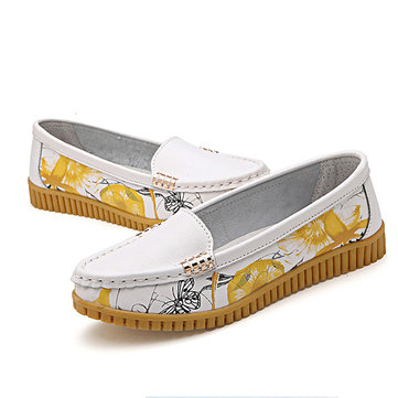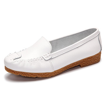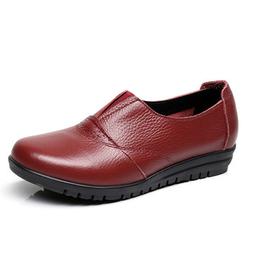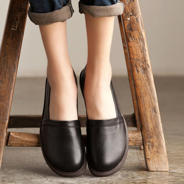 Chaussures en cuir pour femmes low top décontracté slip doux à l'extérieur sur flat loafers