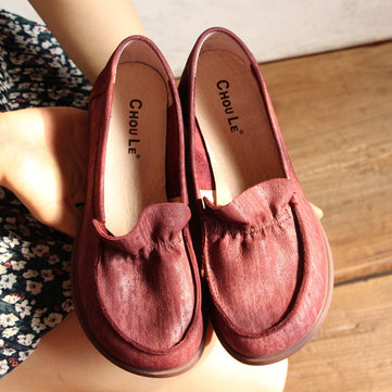 Décontracté bout rond glisser sur les chaussures en cuir doux de couleur pure