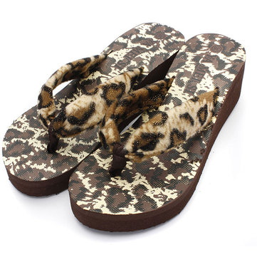 Léopard tongs string plateforme talon compensé plage pantoufles