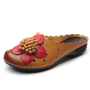 SOCOFY& Cuir& évasé& Décoration& florale& Pantoufles décontractées respirantes