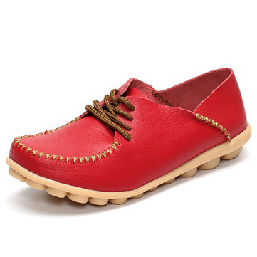 Femmes occasionnels chaussures à lacets en cuir confortable en plein air doux des mocassins plats