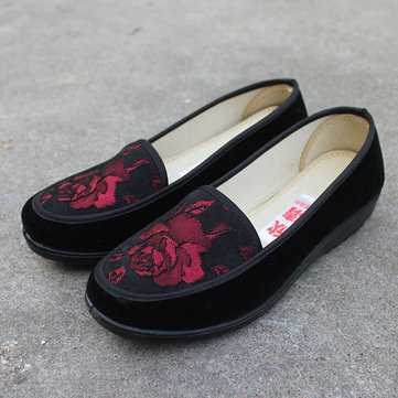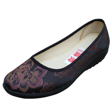 Han chaussures chinois brodé feuillet fleur sur semelle chaussures plates souples