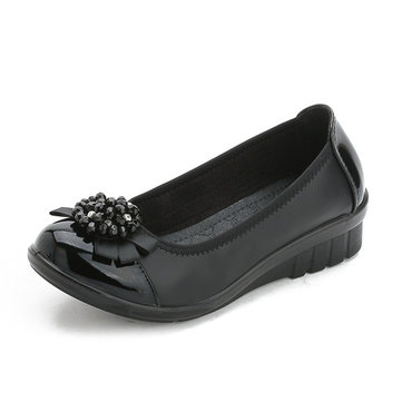 Fleur de couleur pure bowknot perles plates chaussures à semelle souple
