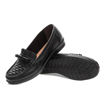 Les femmes loisirs cuir souple chaussures plates bowknot glissent sur des mocassins noirs