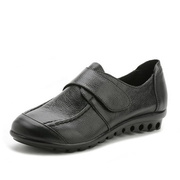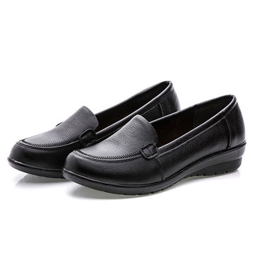 Grandes femmes de taille en cuir souple respirant chaussures plates confortables boucle appartements à bout rond
