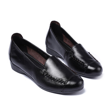 Décontracté en cuir souple bout rond orteil sur plat mocassins