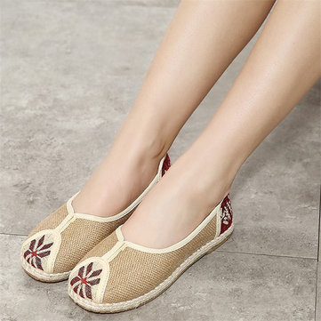 Fleur de style chinois brodé mocassins plats lin seul slip-ons de douces