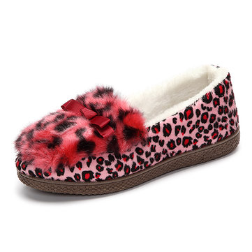 Glisser sur doublure en fausse fourrure léopard bout rond plat chaud appartements