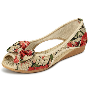 Feuille fleur de lin lumière cru vent national respirante glisser sur les chaussures plates