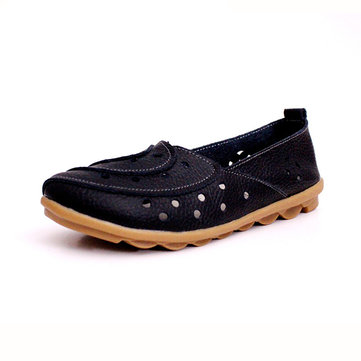 Femmes Mocassins Chaussures d'été de Plein Air Confortables Souples Décontractées Creuses Plates en Cuir