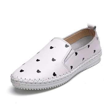 Chaussures plates femmes cuir confortable été en plein air respirable casual douce creusent chaussures
