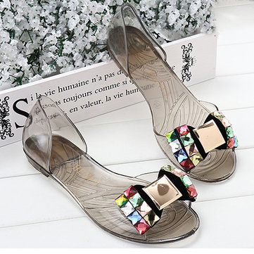 Les femmes d'été plage chics sandales peep toe chaussures plates en strass