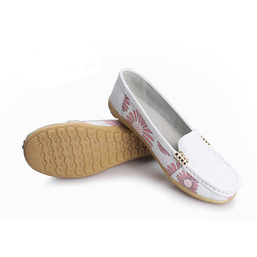 Les femmes flats chaussures confortables slip-on fleur casual mocassin en cuir floral doux Flats chaussures
