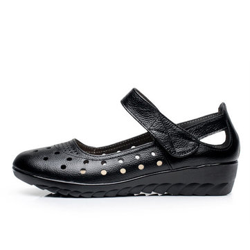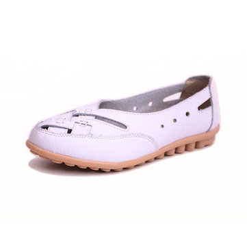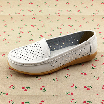 Les femmes été plates occasionnels en plein air en cuir creux sur doux et confortables chaussures de mocassins plat