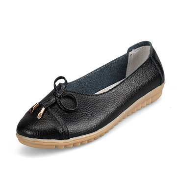 Ronde femmes cuir décontractée couleur pur mocassins souples confortables orteil glisser sur les chaussures plates