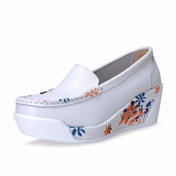 Imprimé floral cuir souple et confortable coin chaussures plate-forme de talon