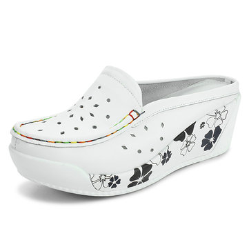 Slip-on chaussures en cuir de motif de fleur évider à talons hauts sandales plate-forme