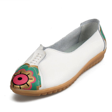 Les femmes mode casual confortable cuir fleur respirant doux bout rond chaussures loafer plat