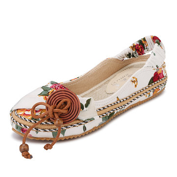 Women de toile mocassins de plate-forme de mocassins bas orteil occasionnels appartements de dessins animés rondes douces