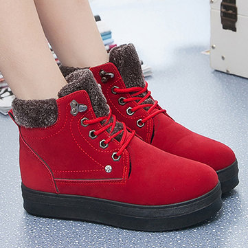 Hiver chaud lacets en daim bout rond bottes courtes en peluche